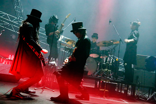 ステージは『I AM MORTAL』の収録曲を中心に、途中には「SACRIFICE」や「ハレルヤ」、「惑星」といった、櫻井が2004年に発表した自己初のソロアルバム、『愛の惑星』からの楽曲も織り交ぜながら進んでいく。そうした時間の流れのなかで印象的だったのは、彼らの体現するダークな世界というのが、実は単純に黒一色で塗り潰された闇ではないということ。バンド名自体が“免れ得ぬ死”を意味することからも察することができるように、歌詞世界も櫻井の死生観といったものが色濃く反映されたものになっているが、そこに描かれる闇にもさまざまな温度や匂い、躍動といったものが伴っているのだ。しかもその演奏ぶりからは、この“生まれたばかりのバンド”におけるメンバー間の音楽的干渉が、日に日によりいっそうお互いの領域に踏み込んだものになりつつあるのが伝わってきた。また、他では目にしたことのないような映像や照明効果を用いた演出も見られ、それらがこのバンドと音楽が持つ深みや奥行きといったものをいっそう際立たせていた事実も重要だろう。メンバーたちのみならず、このステージに関わる誰もが、THE MORTALという“限りあるバンド”に最大限の貢献をしようとしているのが伝わってきた、と言っても大袈裟ではないはずだ。