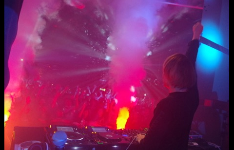 オープニング後すぐに超満員になった会場に、オープニング映像と共に登場したのはbanvox。全9面による映像やレーザーによる演出で会場は一気にレイブ感マックス!