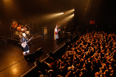 そして、観客が拳を突き上げてサビを大合唱する「恐怖の大王」、鈴木がハンドマイクで観客を煽動する「冥土喫茶」、ナカジマが元気いっぱいにヴォーカルをとる「超能力があったなら」など、中盤以降もクライマックスの連続。本編の最後には「人面瘡」「針の山」といった必殺の名曲が飛び出し、赤坂BLITZは揺れに揺れた。