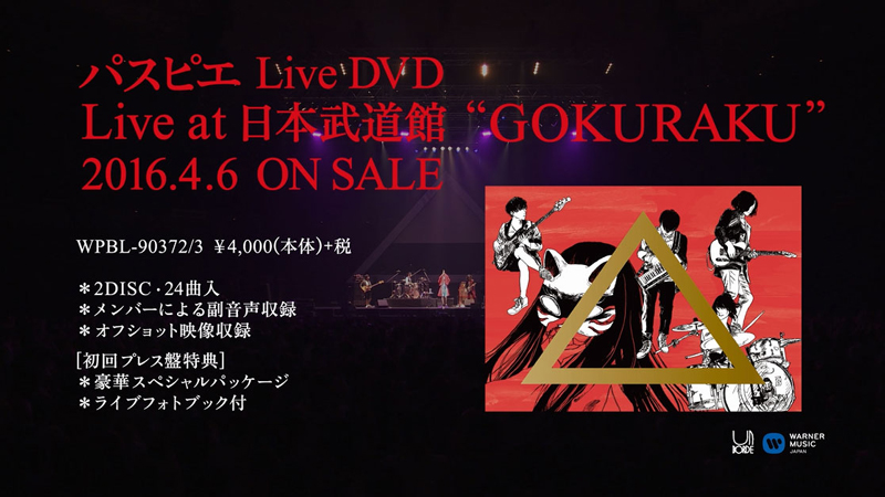 パスピエが、4月6日に初の映像作品となるライブDVD『Live at 日本武道館”GOKURAKU”』、4月27日には2016年第一弾シングル「ヨアケマエ」を連続リリースする。