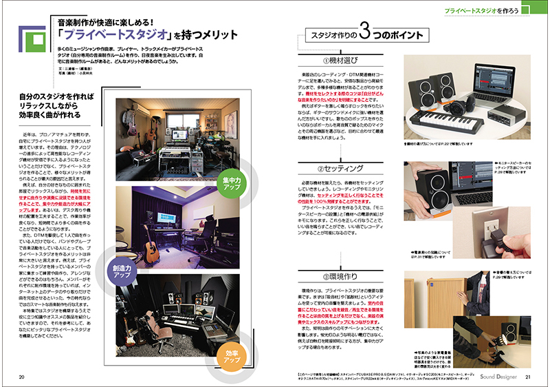 サウンド・デザイナー5月号に掲載されるプライベートスタジオ特集では、部屋作りの方法とオススメのアイテムを40ページに渡って紹介します。ゼロから音楽制作用の部屋を作ってみたいと考えている人から、今の制作環境をグレードアップしたいと考えている人まで、すぐに役立つノウハウが満載です!