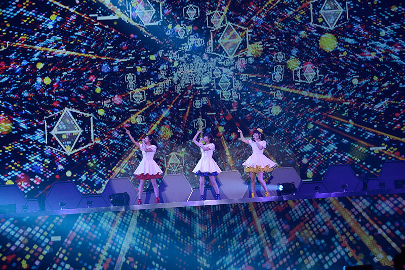 ラストライブはTridentの最初の楽曲「ブルー・フィールド」でスタート。3人での楽曲、ユニット内のデュエット曲、各自のソロ曲など、全30曲を熱唱した。さらに、新曲として「Blue Horizon」を披露。スクリーンに展開された、3人の演じる3DCGキャラクターが踊る新規映像をバックにパフォーマンスを行なった。また、同作品に出演した男性声優によるユニット“Blue Steels”(興津和幸、宮下栄治、松本忍)も登場し、全5曲を披露。公演時間は約5時間に及び、8000人のオーディエンスを魅了した。