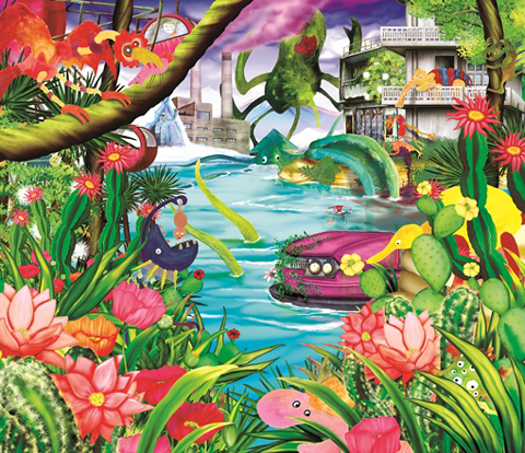 今回明かされたジャケット写真は、植物が生い茂る荒廃した遊園地がテーマで全体が水彩画で描かれたのミステリアスな雰囲気を醸し出すものとなっている。デザインは前作の『ジパング』同様にOTAMIRAMSが担当。そして、キャラクターの絵をコムアイの友達である「野崎くん」が担当している。