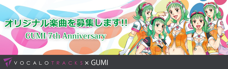 ボーカロイドミュージック配信専用レーベル「VOCALOTRACKS」が、歌声合成ソフト「VOCALOID Megpoid」の発売7周年を記念してGUMI(VOCALOID Megpoid)が歌うオリジナル楽曲を募集し、全曲配信手続きを行なうことを発表した。