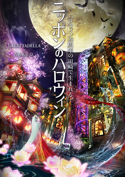 今回は、10名以上のキャストたちよるダンスと照明・噴水演出、音楽、プロジェクションマッピングの演出が融合。総合演出の村松亮太郎(NAKED Inc.)を筆頭に、衣装では新進気鋭のキモノデザイナー斎藤上太郎、音楽面では上田剛士(AA=)、最終日にはダンスユニットのAyaBambiがダンスパフォーマンスを繰り広げるなど日本のトップクリエイター達による奇跡のコラボレーションが実現。ハロウィン20周年の川崎の夜に、日本ならではの夜限定“大人のハロウィン空間”が創り出される。西洋の文化であるハロウィンを日本風にアレンジ。着物を着た日本のお化けがでてきて、西洋のゴーストと交わる。ウェストミーツイースト、そんなエポックメイキングな瞬間を表現し、まさにここから日本人による「ニッポンのハロウィン」が生まれる。