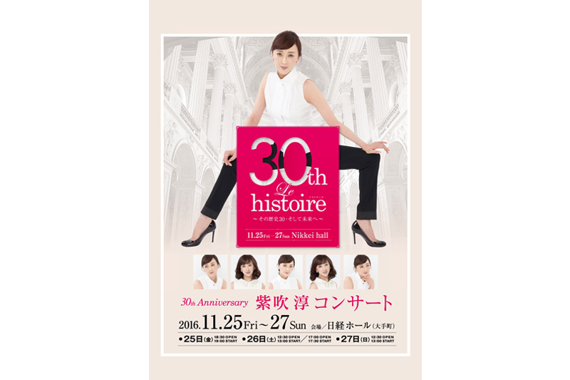 元宝塚歌劇団月組トップスターの紫吹淳がデビュー30周年を記念したアニバーサリーコンサートの開催を発表した。タイトルの “Le histoire”(イストワール)がフランス語で意味する「歴史」という言葉の通り、宝塚時代の名曲やダンスナンバー、おなじみの曲からそして新曲まで30年の歴史が詰まったナンバーを披露する予定となっている。