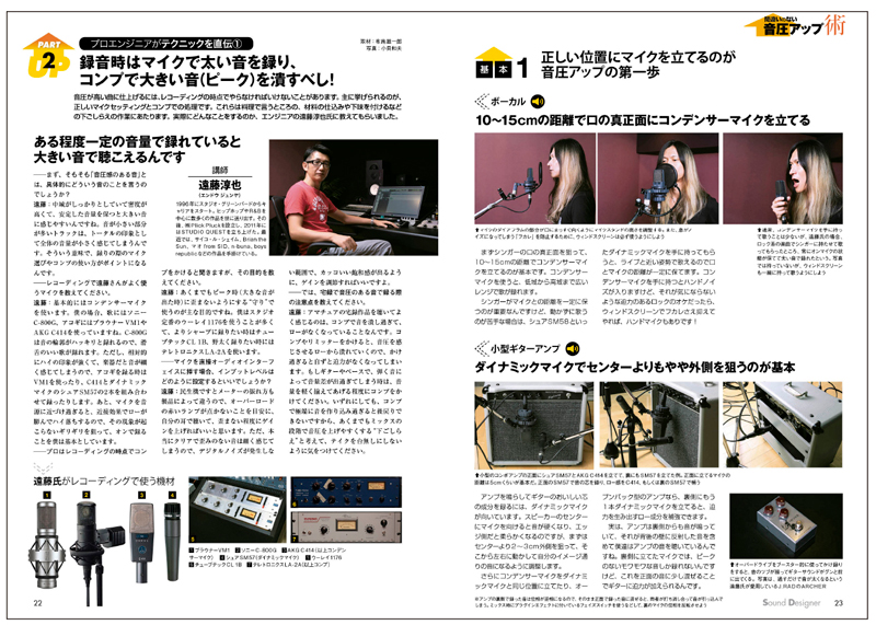 この特集では「音がショボい」、「ギターが前に出てこない」というような皆さんの悩みを解決するために、音圧を上げて迫力のあるトラックを作るテクをエンジニアから聞き出し、「録音、ミックス、マスタートラック」という3つの行程ごとにたっぷり紹介します。
