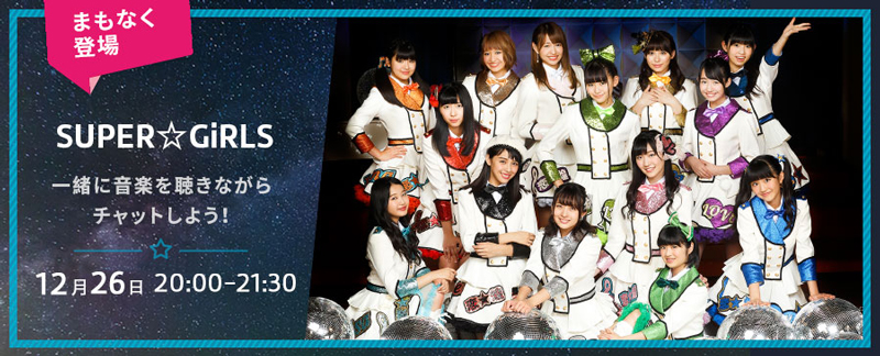 12月26日に開催されるSUPER☆GiRLSのListen withイベントは、ニューシングル「恋☆煌メケーション!!!」のリリースを記念したもの。「恋☆煌メケーション!!!」は、8月に発売したSUPER☆GiRLS“第3章"第1弾シングル「ラブサマ!!!」に続く、SUPER☆GiRLS史上最大の14人体制でのシングルとなっている。