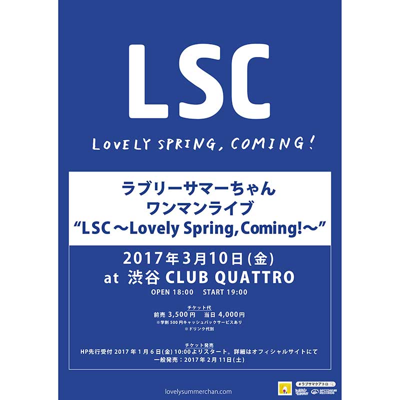 2016年11月2日にビクター/スピードスターレコーズからメジャーデビューを果たし、今年3月10日(金)にメジャーデビューアルバム『LSC』のリリースを記念したワンマンライブ“LSC ~Lovely Spring, coming!~”を自身初となる渋谷CLUB QUATTROで開催することを発表したラブリーサマーちゃん。