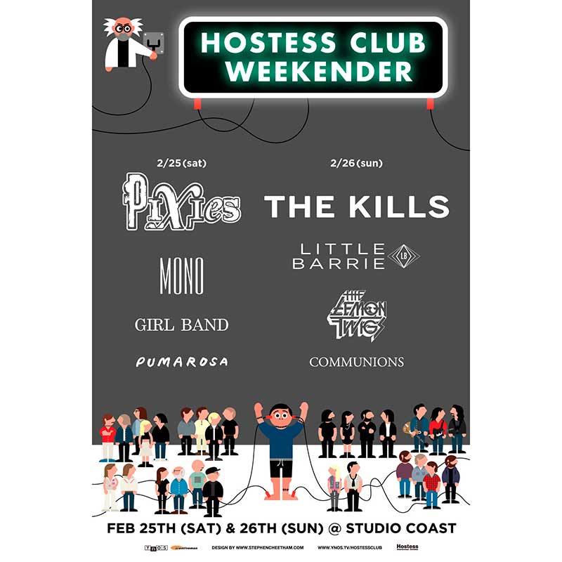 2月にピクシーズ、ザ・キルズ等豪華アーティストを迎えて開催される音楽イベント「Hostess Club Weekender」が、いよいよ明日14日(土)からチケット一般発売を開始する。