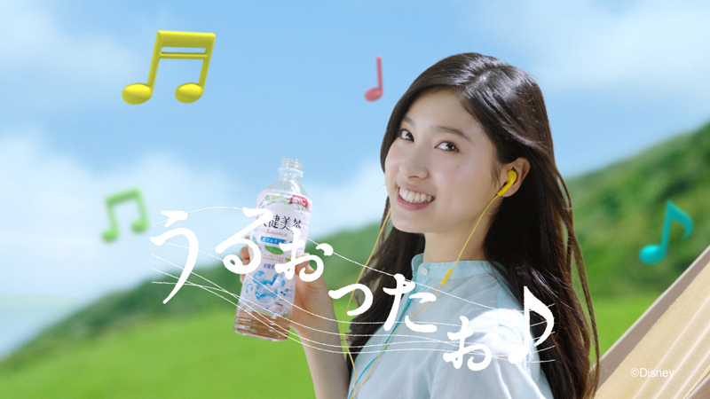 イヤホンをつけ、目をつむりながら音楽を聞く土屋太鳳。そしてmiwaが歌う「アンダー・ザ・シー」にぴったりの明るい笑顔で、ココロとカラダが「爽・健・美」になる様々なディズニーミュージックが揃っていることを紹介。