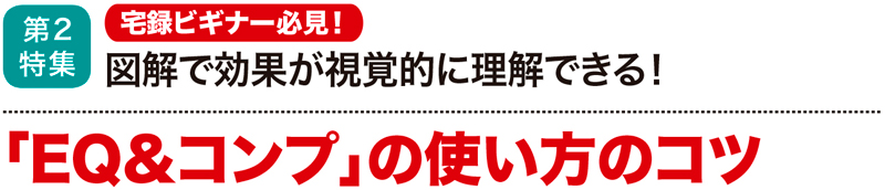 EQとコンプは、宅録をしていて一番多く使うエフェクトです。本特集は、それらの役割が理解できていないビギナーのために、操作法を図やイラストを使ってわかりやすく紹介します。EQとコンプが使えるようになれば、作品の質がアップすること確実です!
