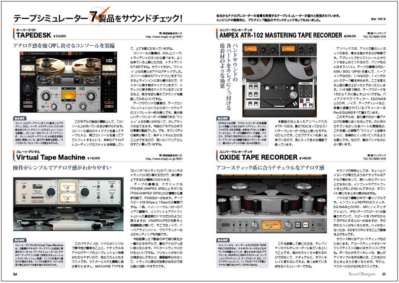 近頃、アナログテープ特有のサウンドを再現することができるハード&ソフトが、各メーカーから続々リリースされています。本特集では、テープ関連の製品を効果的に使う方法を探ると共に、注目製品をプロに試奏してもらい、それぞれの特徴に迫ってみました。