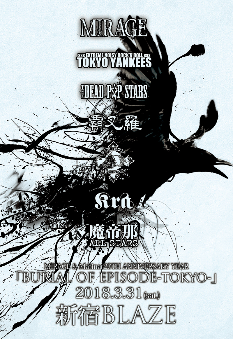 さらにこの日は、Matina20周年を祝うことから、「ダウト」の幸樹を中心に、当日限定バンド「魔帝那オールスターズ」(Vo:幸樹-ダウト B:塩谷朋之-More- Ds:テロ-†я i ¢к-他)も舞台へ登場する。幸樹、そしてメンバー全員がMatina所属バンドとして活動していた歴史があるように、彼らの参加は、このイベントへ最高の華を添えてゆく形になりそうだ。加えてこの日は、MIRAGEやKISAKIと縁の深かった豪華面子、覇叉羅/TOKYO YANKEES/Kra/THE DEAD P☆P STARS/KINGが共演バンドとしてイベントを盛り上げてゆく。