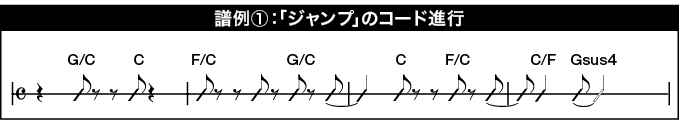 これはローリング・ストーンズの「サティスファクション」と並び、ロック史上で5本の指に入るインパクトを持ったイントロです(野口の主観ですが……)。ご存じない方は、YouTubeなどで「van halen jump」と検索すれば、簡単に「ジャンプ」のPVやライブの演奏が見られますよ!