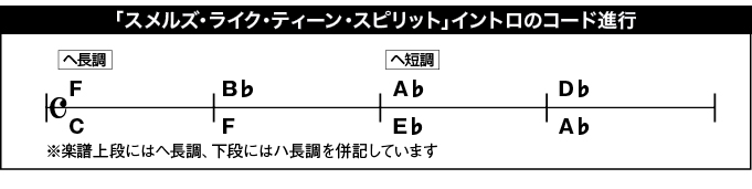 ところで、クリーントーンで弾くと、このオルタナ進行にはどこかビートルズを感じさせるものがありませんか? それもそのはずで、カートは大のジョン・レノンのファンだったそうです。60年代ロックの遺伝子がカートの中に、そしてオルタナの中にも息づいていたのですね。