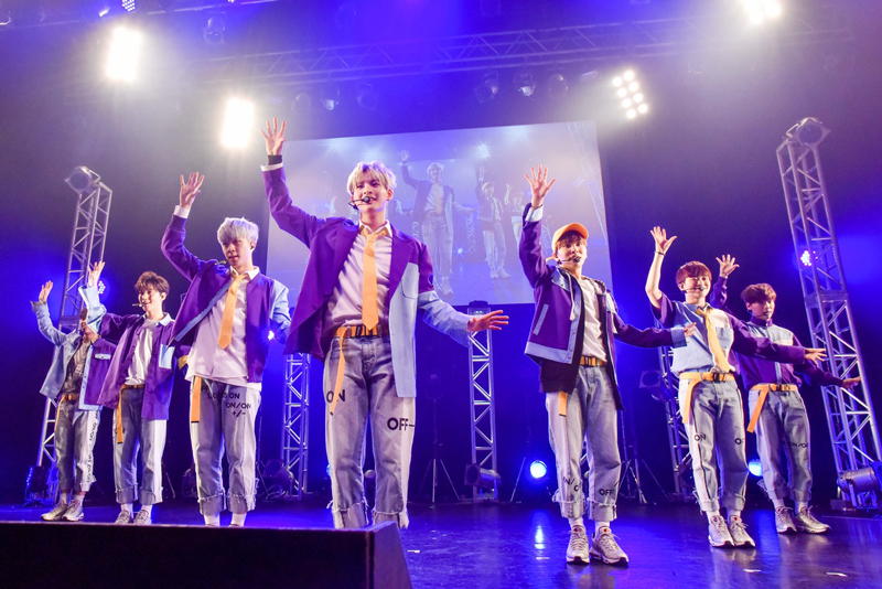 トークコーナーではメンバーの愉快なオフの姿が徹底解剖され、「甘いルックスなのに、実はとてもメンバーに厳しいジェイアス」「メンバーが彼氏にしたい男No.1のMK」「1分間でハンバーガーを食べる特技を持つワイアット」ということが判明。また、ゲームコーナーではONチームとOFFチームに分かれてのチーム対抗戦が行われ、お絵かきバトルではイーションの画伯としての才能を、ダンスバトルでラウンを初めとするOFFチームのキレのあるK-POPカバーダンスをみせ、会場を沸かせた。さらに、個人対抗戦では巨大ジェンガに挑戦!ブロックをメンバーが1本抜くたびに会場にも緊張感が漂い、ハラハラドキドキ。ついにタワーを倒したメンバー、イーションが罰ゲームとして、おにぎりの被り物で登場。その姿でのフォトセッションに会場のファンも大興奮となった。