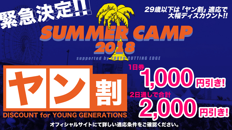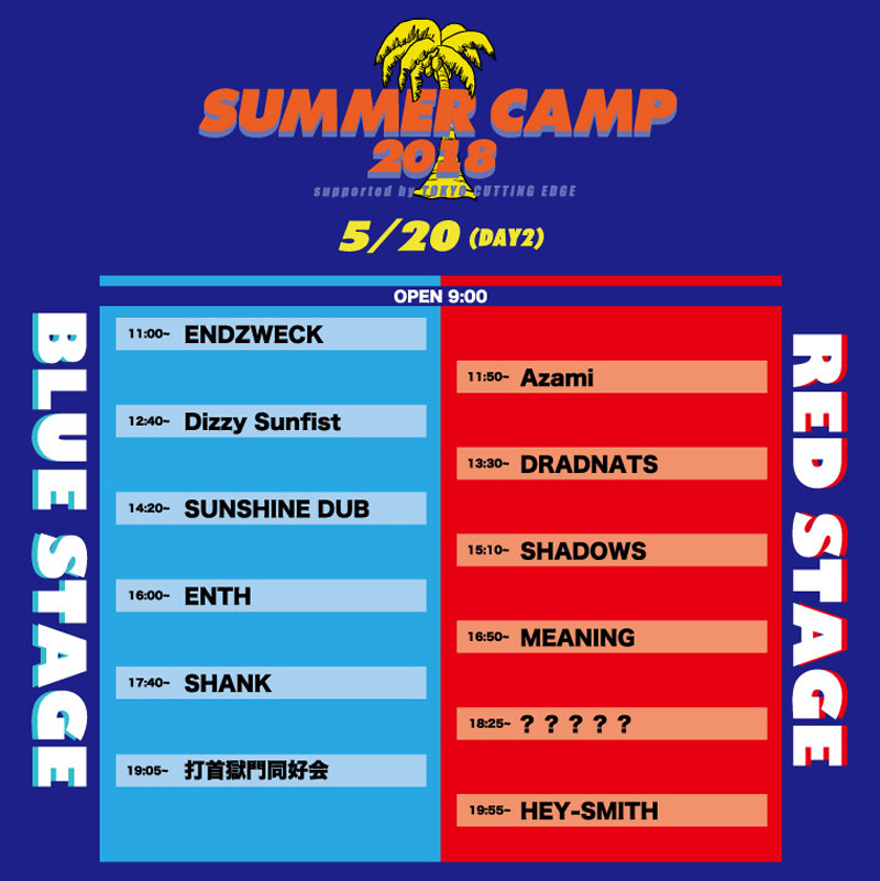 5月19日(土)と20日(日)の二日間、お台場の野外で開催するパンク・ラウド系ロック・イベント<SUMMER CAMP 2018>、当日のタイムテーブルが公開された。両日ともトップバッターからトリまで休む間も無い。そして、「?????」と記載されているスペシャル・ゲストが誰なのかは出演するその時までシークレットとのこと、楽しみにしておこう!!