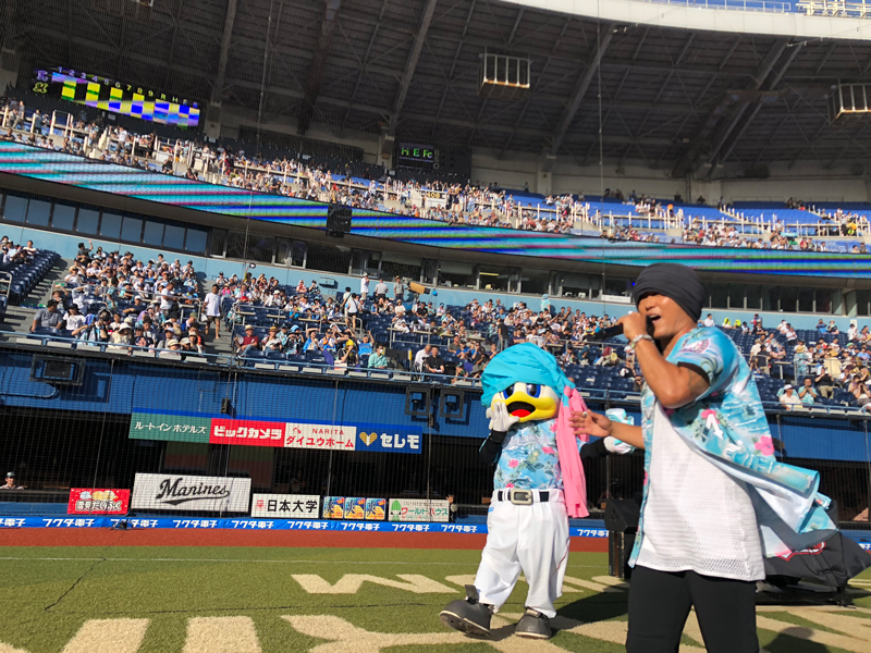 発売したばかりのオリジナルEP『Sunshine Love』は自身初のiTunesデイリー最高位1位と絶好調のHAN-KUNが8月12日LOTTEアイス MAKUHARI SUMMER STADIUMの埼玉西武戦(ZOZOマリンスタジアム、17:00試合開始)のグラウンドで25,057人の観客を前にスペシャルライブを実施した。