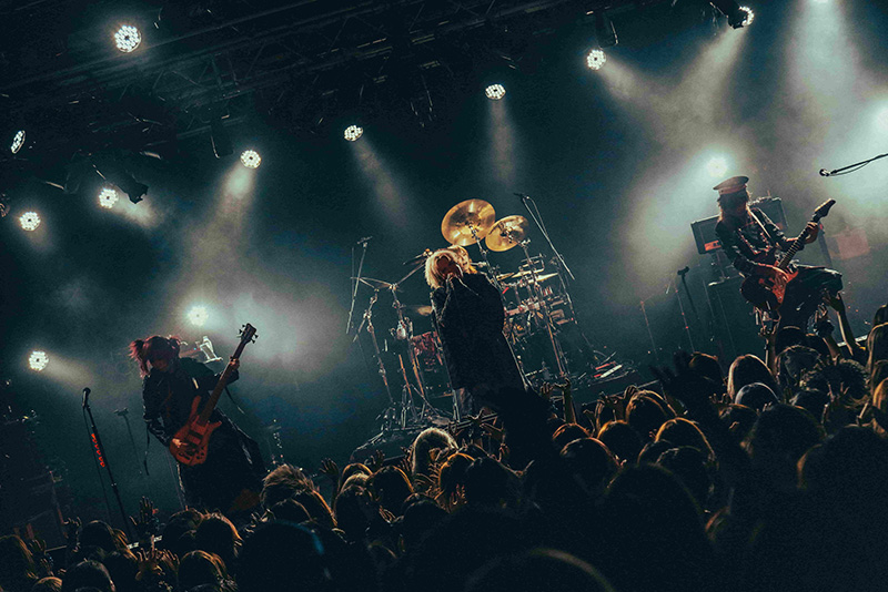 なお、ここまでがDEZERTにとっての後輩バンドたちによるステージングであったのに対し、3番手としてドラマティックな「クロアゲハ」からライヴをスタートさせたRoyzは、言うなればDEZERTとはほぼ同期と言っていい間柄のバンド。特に、昨年10月に[DEZERT × Royz “デザートとロイズでアナタのハートに火はツキマス~?...多分ダイジョウブデスっ!” ]で2マンライヴを実現させたのを機に交流が深くなったそうで、どうやらこのタイミングでの再共演は両バンドにとって大きな意味を持っていたようだ。